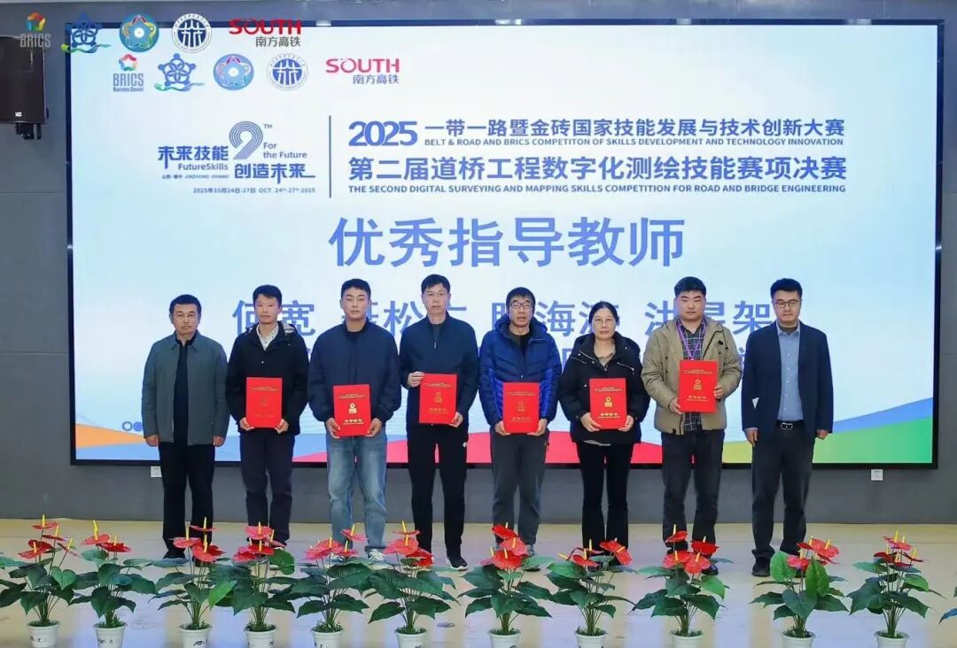据悉,金砖国家技能发展与技术创新大赛是经金砖国家最高领导人会晤筹备委员会认可的国际性高水平赛事。本次大赛聚焦道桥工程数字化测绘前沿技术,旨在推动技能发展与技术创新。自备赛以来,在吕志刚、旷雄、周帅老师组成的指导教师团队悉心指导下,六位参赛选手刻苦钻研,坚持高强度系统训练,反复打磨施工放样、无人机航测虚拟仿真和道路三维激光扫描与处理等竞赛项目,为取得优异成绩奠定了坚实基础。