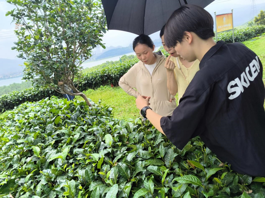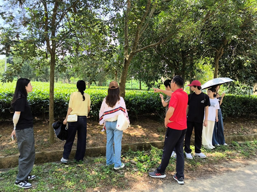 师生漫步茶园,实地调研茶叶生长环境,感受茶田生态